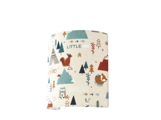 Les Appliques Murales sont réalisées à partir d'une carcasse métallique demi-cylindrique finition peinture époxy blanche recouverte de tissu 100% coton certifié OEKO TEX (sans produit chimique) motifs imprimés Pandas contrecollé sur un polyphane ignifugé blanc (PVC non inflammable).