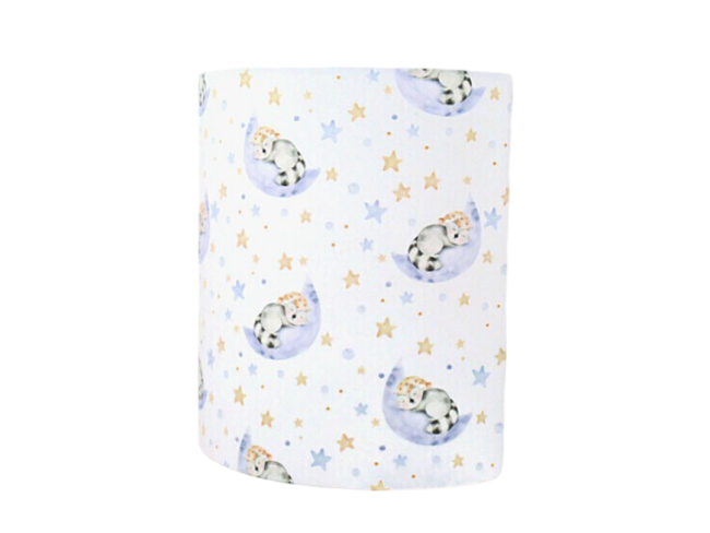 Les Appliques Murales sont réalisées à partir d'une carcasse métallique demi-cylindrique finition peinture époxy blanche recouverte de tissu 100% coton certifié OEKO TEX (sans produit chimique) motifs imprimés Aborigènes roses contrecollé sur un polyphane ignifugé blanc (PVC non inflammable).