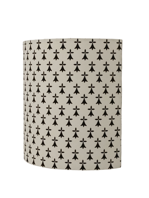 Les Appliques Murales sont réalisées à partir d'une carcasse métallique demi-cylindrique finition peinture époxy blanche recouverte de tissu 100% coton certifié OEKO TEX (sans produit chimique) motifs imprimés futon - bleu contrecollé sur un polyphane ignifugé blanc (PVC non inflammable).