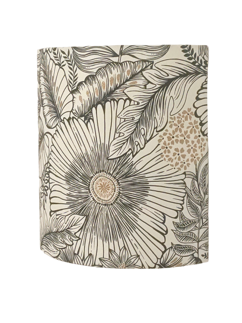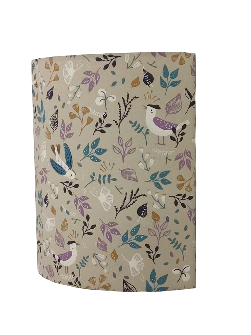 Les Appliques Murales sont réalisées à partir d'une carcasse métallique demi-cylindrique finition peinture époxy blanche recouverte de tissu 100% coton certifié OEKO TEX (sans produit chimique) motifs imprimés oiseaux contrecollé sur un polyphane ignifugé blanc (PVC non inflammable).