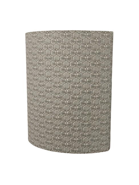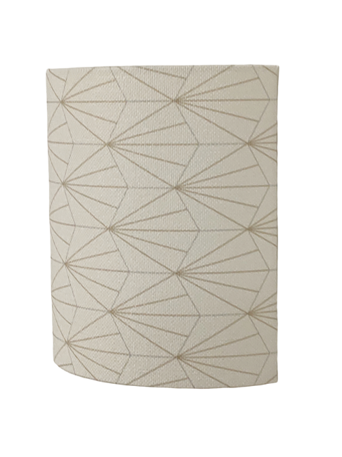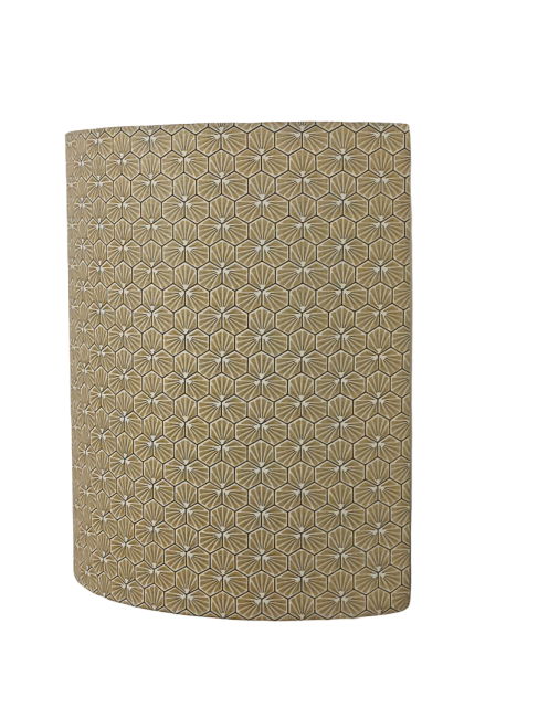 Les Appliques Murales sont réalisées à partir d'une carcasse métallique demi-cylindrique finition peinture époxy blanche recouverte de tissu 100% coton certifié OEKO TEX (sans produit chimique) motifs imprimés géométriques - Riad Or contrecollé sur un polyphane ignifugé blanc (PVC non inflammable).
