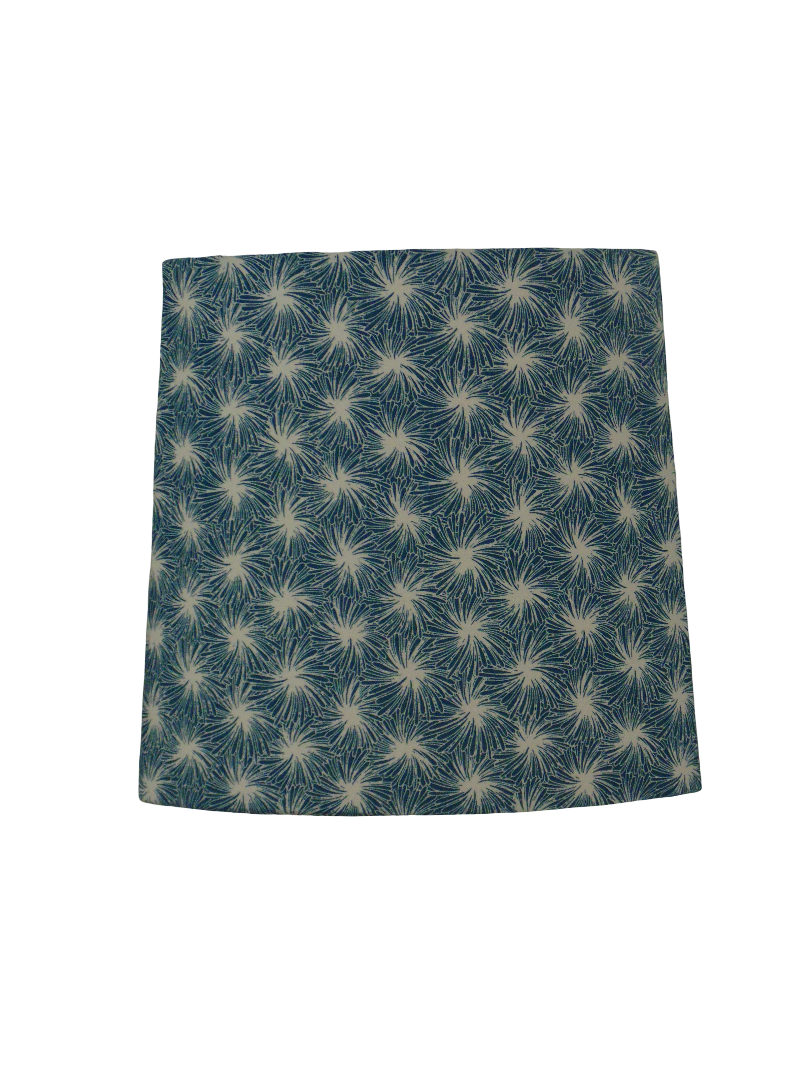 Les Appliques Murales spéciales angles sont réalisées à partir d'une carcasse métallique finition peinture époxy blanche recouverte de tissu 100% coton certifié OEKO TEX (sans produit chimique) motifs imprimés futon - bleu contrecollé sur un polyphane ignifugé blanc (PVC non inflammable).