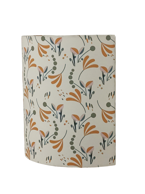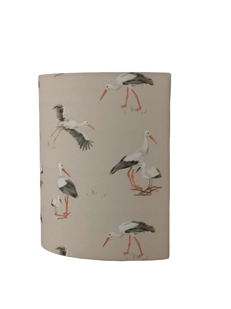 Les Appliques Murales sont réalisées à partir d'une carcasse métallique demi-cylindrique finition peinture époxy blanche recouverte de tissu 100% coton certifié OEKO TEX (sans produit chimique) motifs imprimés Cigognes contrecollé sur un polyphane ignifugé blanc (PVC non inflammable).