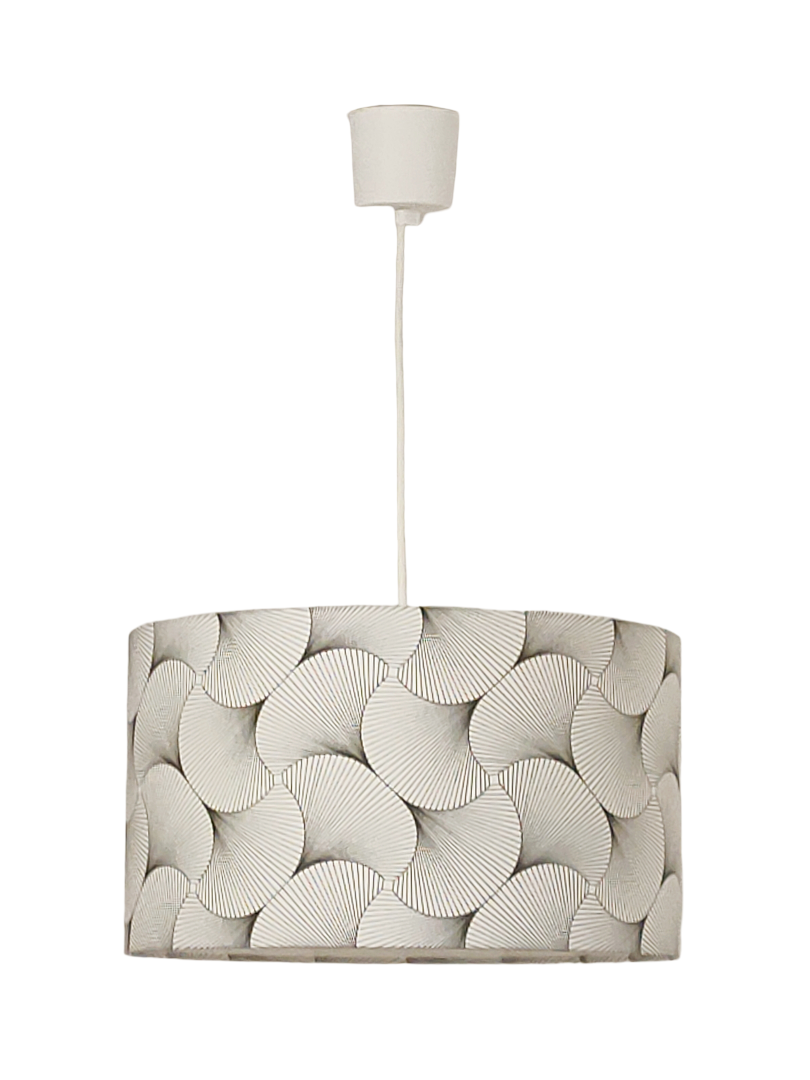 La suspension abat-jour est réalisée à partir d'une carcasse métallique finition époxy blanche recouverte de tissu 100% coton certifié OEKO TEX (sans produit chimique) motifs imprimés géométrique tendance moderne noir et blanc contrecollé sur un polyphane ignifugé blanc (PVC non inflammable).