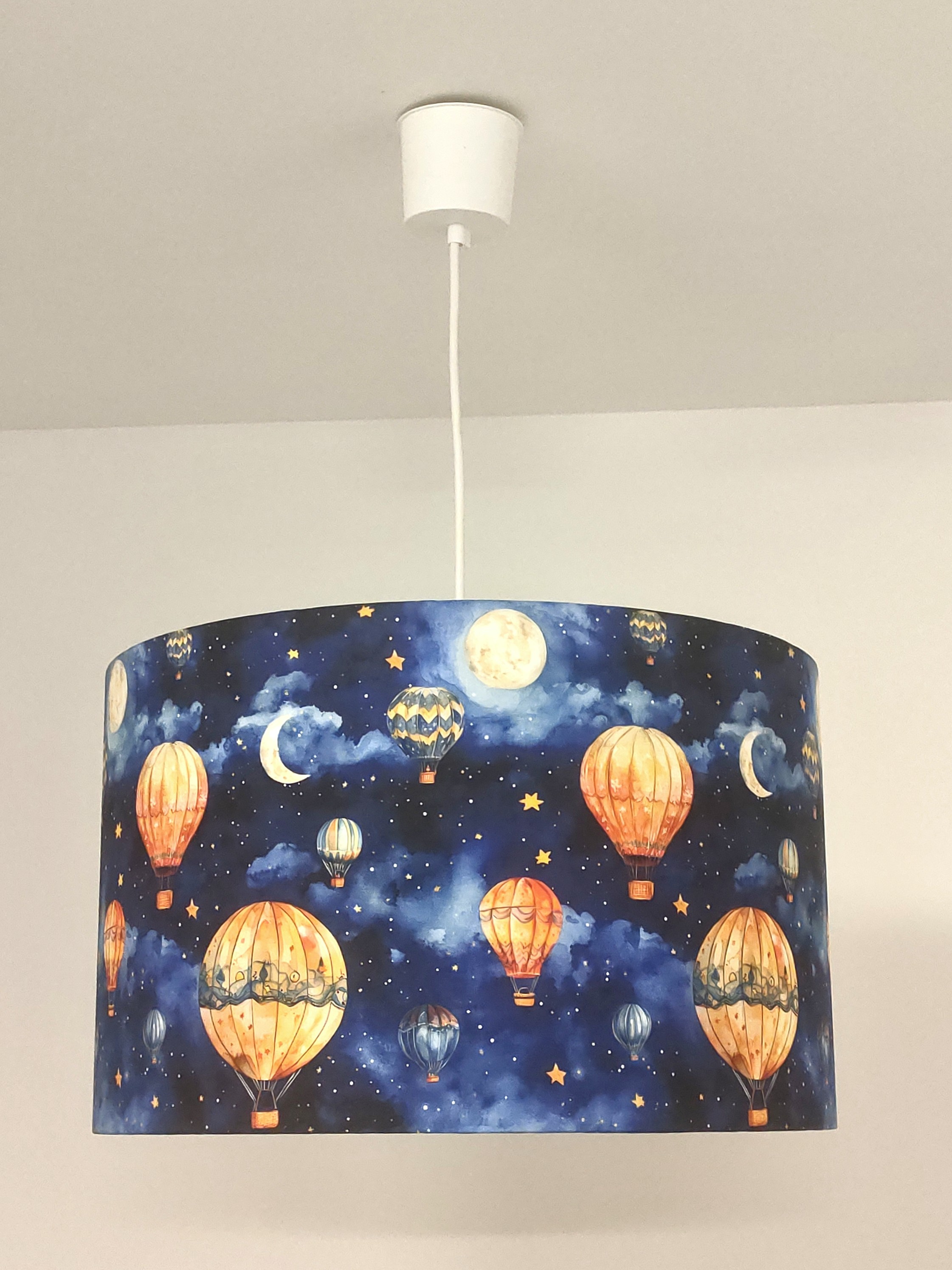 Ce luminaire trouvera facilement sa place dans toutes les pièces de la maison et apportera une touche poétique avec ce joli motif dans l'esprit Jules Vernes avec ces jolies Montgolfières dans le ciel étoilé