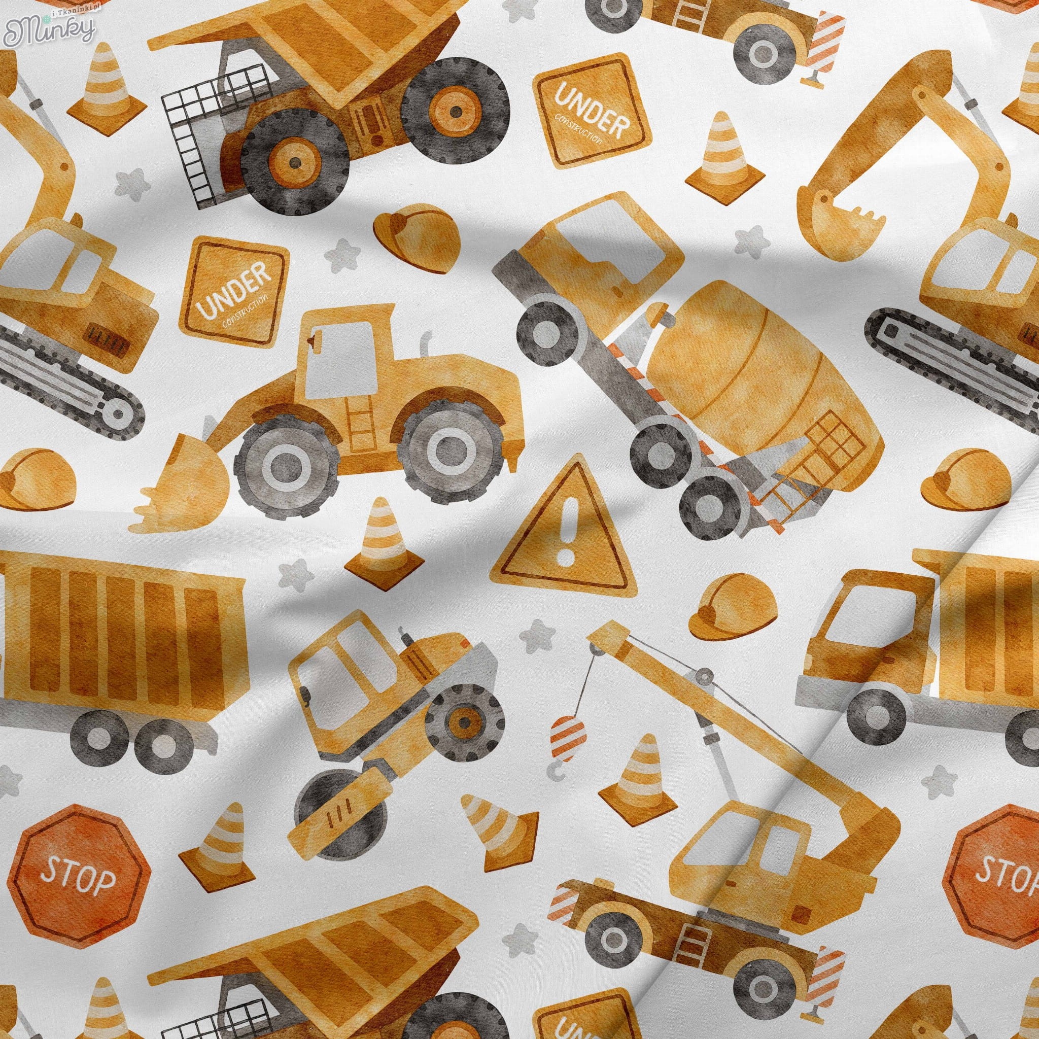La suspension abat-jour est réalisée à partir d'une carcasse métallique finition époxy blanche recouverte de tissu 100% coton certifié OEKO TEX (sans produit chimique) motifs imprimés les camions de chantier contrecollé sur un polyphane ignifugé blanc (PVC non inflammable).