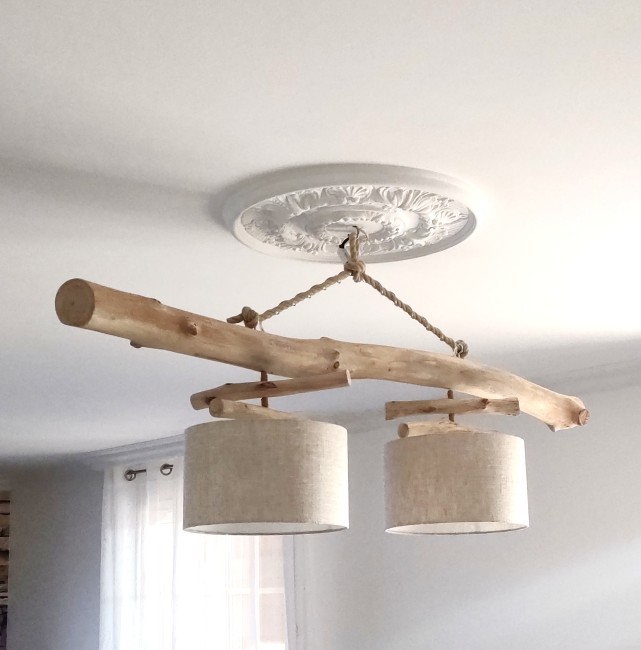 Création personnelle, unique et originale d'un superbe lustre en bois flotté.