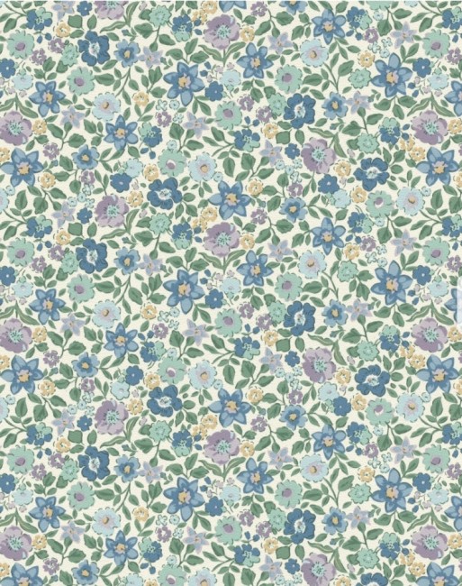 L’abat-jour est réalisé à partir d'une carcasse métallique finition époxy blanche recouverte de papier intissé imprimé motifs Liberty - petites fleurs bleues contrecollé sur un polyphane ignifugé blanc (PVC non inflammable).