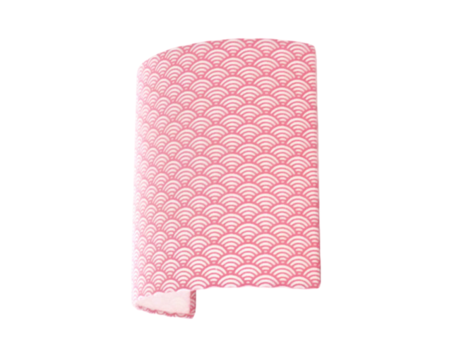 Applique Murale demi-cylindrique en tissu rose motif sushis rose vague seigaiha tissu traditionnel japonais entièrement fait main.