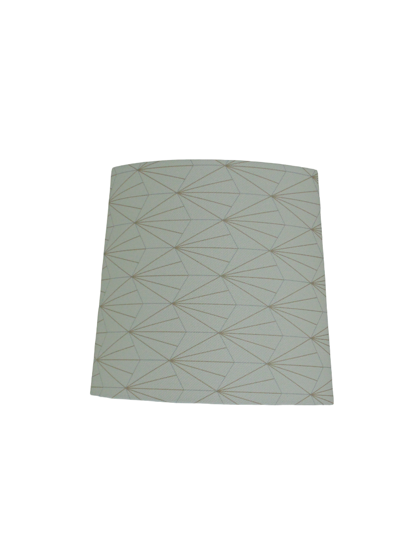 Les Appliques Murales spéciales angles sont réalisées à partir d'une carcasse métallique finition peinture époxy blanche recouverte de papier intissé imprimé motifs Art déco contrecollé sur un polyphane ignifugé blanc (PVC non inflammable).