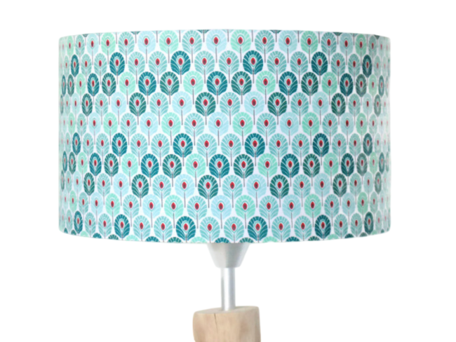 Abat-jour plumes de paon vertes roses