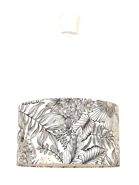 suspension abat-jour fleurs noires et blanches dorées