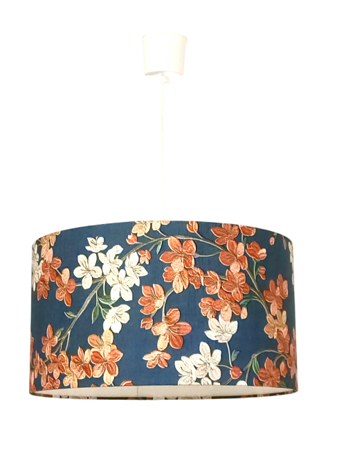 suspension abat-jour fleurs blanches et terracotta fond bleu marine - Offre Spéciale